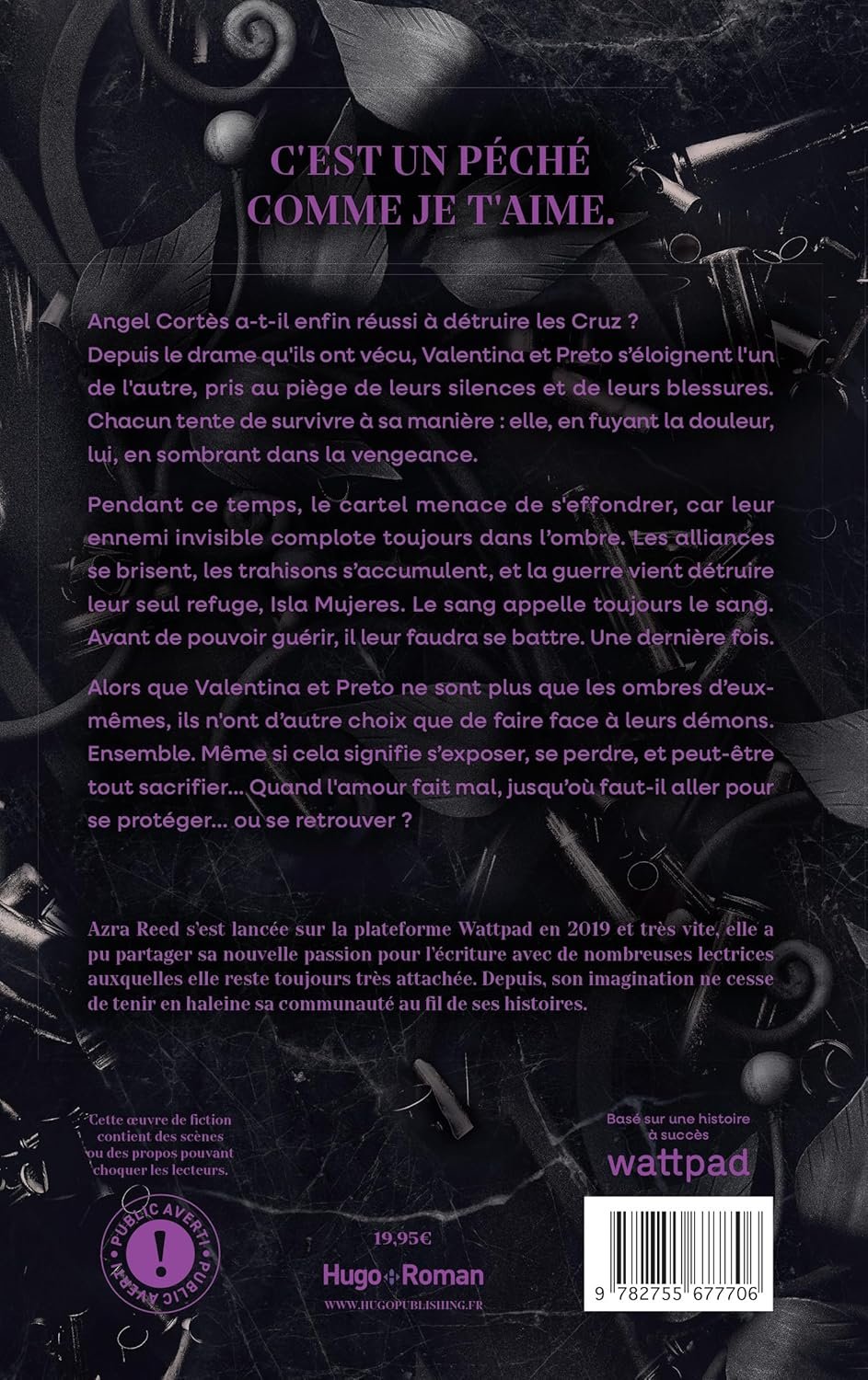 Azra Reed est une autrice française qui a commencé à écrire fin 2019. Plongée dans la lecture d’histoires de mafia, elle s’est lancée sur une plateforme d’écriture avec Valentina. Avec plus de 46 millions de lectures, elle a très vite pu partager cette nouvelle passion avec de nombreuses lectrices auxquelles elle est toujours très attachée. Depuis, Azra nourrit sa passion pour l’écriture en donnant vie à de nouvelles histoires !